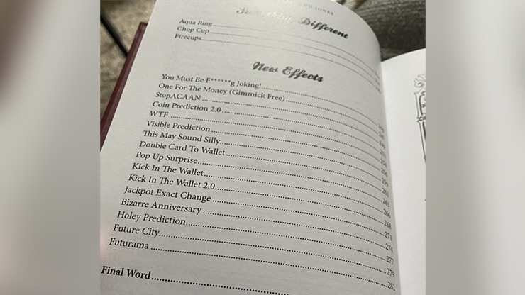 As well as essays on performing close up magic and misdirection. Chapters on card magic, coins, mentalism and “something different”.