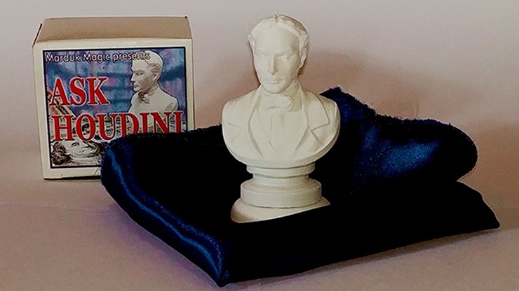Effect: Borrow a bill, ask to sign it or take note of the serial number, and places it under a handkerchief. Then give the handkerchief, with the bill inside, to a spectator and show a little bust of Harry Houdini (3 inches tall). Give the bust to the other spectator to keep it in full view. You then throw one of corners of handkerchief and the bill doesn’t fall down to floor, it’s disappeared. Immediately, request to spectator (that has the bust) open it by unscrew the base and inside of bust will be the bill with the sign.