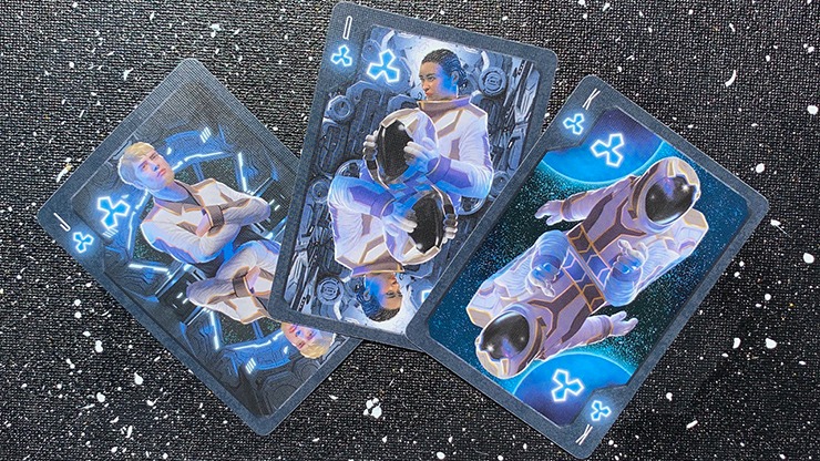 Make your next card game or magic routine out of this world with this fully custom space themed Bicycle deck. In addition to 52 cards and 2 jokers, an alternative queen of hearts and a blank face card is also included. These extra cards can be used for alternate game play or magic tricks (instructions not included.) You will love showing off these far out cards to your family & friends. Background art for photos courtesy of Chloe Roya.