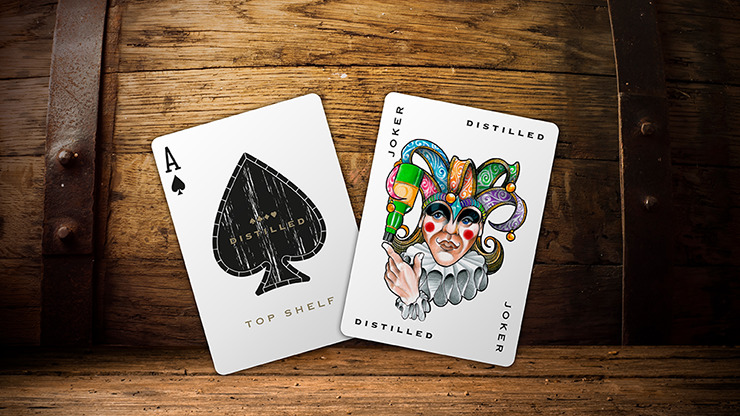 The Bicycle Distilled Top Shelf Playing Cards are beautifully crafted decks that honors the age-old art of producing hard liquor. These decks are designed and produced by The Well Suited Custom Playing Card Company. The cards are printed on high-quality Bicycle Classic Grade card stock by The United States Playing Card Company, featuring their famous Air-Cushion finish.
