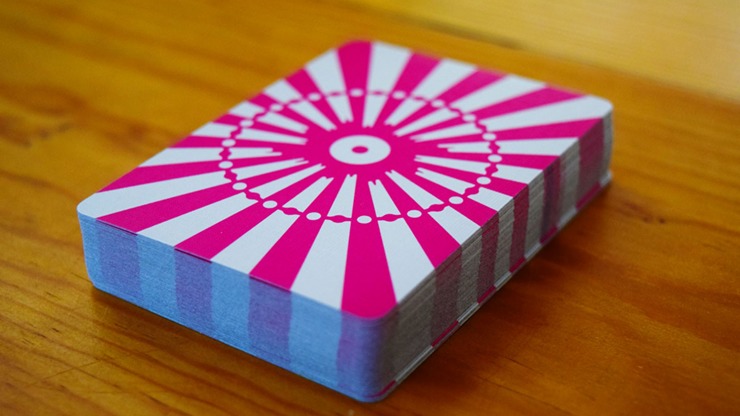 ZERO is the unofficial first deck in the Cardistry Club series. It features a bright magenta borderless sunburst pattern on the back, graphic court cards, and edge design on the faces to enhance fans/spreads. This deck looks amazing in fans, spreads, pirouettes, and similar cardistry moves.