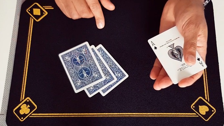 You bury the Ace of Spades within the packet of cards and with a click of your fingers, you make it completely disappear, only for it to reappear with another magical click. You show the three blank cards to have a blue back and ask the spectator to name the color of the Ace of Spades? If they say blue, wrong, for it now has a RED back, completely different from the others.