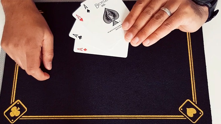 For the finale, you turn all the cards face down and tell the spectator to touch ANY card that is not an Ace. They touch one of the blue backed cards and you tell them that they have lost, because when you turn the cards over, they are now all ACES!