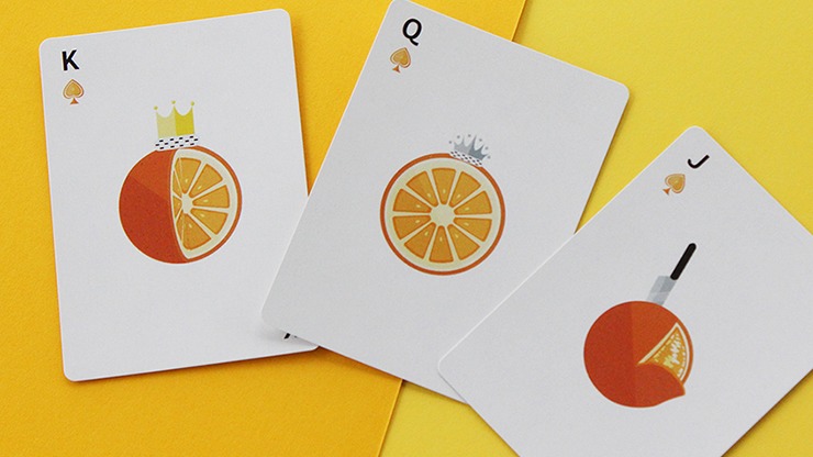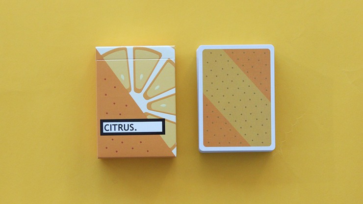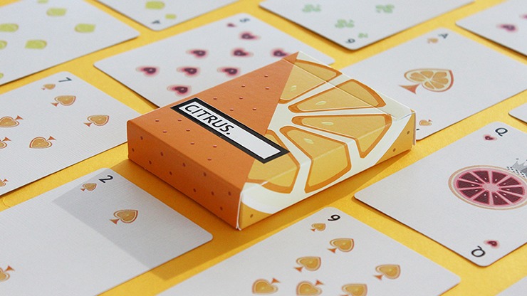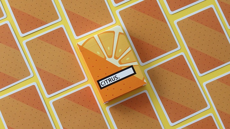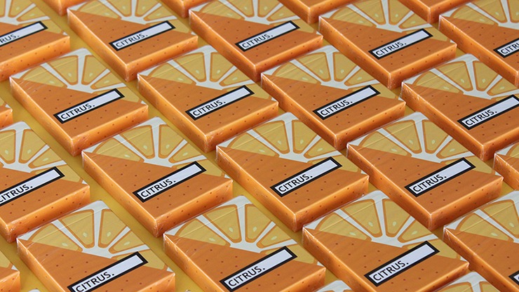 The CITRUS Deck is the fourth installation of the Deliciousness Series, designed by FLAMINKO Playing Cards. The CITRUS Deck is all about the citrus fruit family. Printed in Belgium by Cartamundi, these cards sport the highest stocks and finish available. These cards are just what you need for that sharp new tang for the collection and orange themed magic routines.
