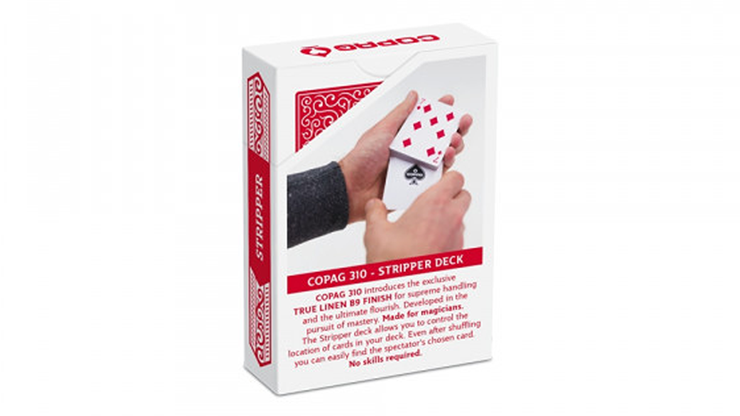 A stripper deck also known as a tapered deck allows you to control the main location of a card or a group of cards easily within the pack. Even after being shuffled by a spectator, you can cut to a selected card or move multiple cards to specific locations using basic shuffles. The cards of a stripper deck are slightly tapered, so that the sides no longer form a perfect rectangle. The change is slight enough to be undetected by visual inspection or even casual handling. Many of the effects achieved with a stripper deck can also be accomplished with sleight of hand.