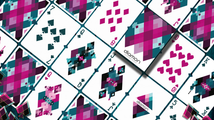 Much of what you know and love about the Diamon deck series has remained the same. Nxc2xba17 features the same small border-bleeding diamond that folds over the edge of back design and face cards, allowing for awesome spreads and fans!