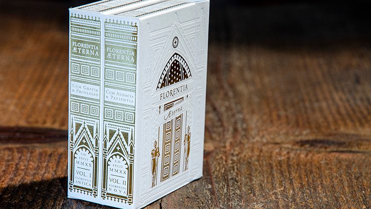 It has become a tradition for Passione Playing Cards to produce a luxury double-deck tuck case, shaped like a book, which is a work of art in its own. Florentia Aeterna will hold both Florentia Antica and Florentia Nova cards together in a limited, hand-numbered edition.
