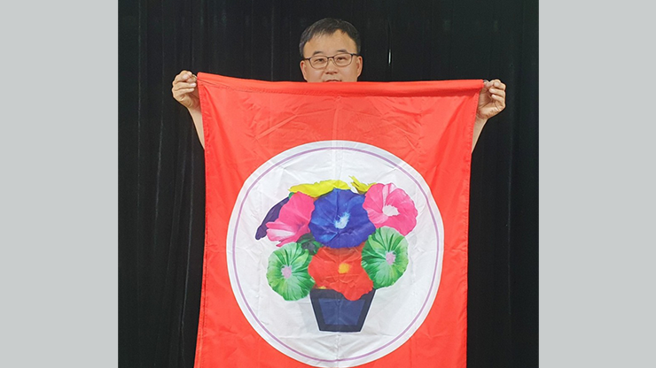 Instantly the magician transforms the flowers into a large, full-sized banner that miraculously has the same potted flowers now imprinted on it!