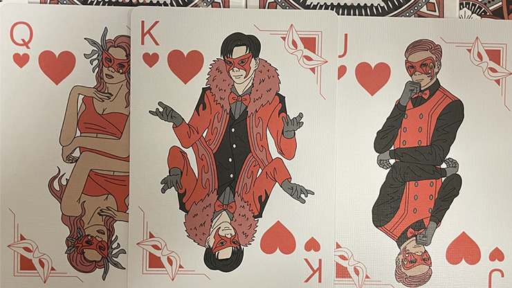Masquerade: decadence, deception, seduction. Four secret societies meet after centuries, in a false peace. Stakes: high. Only jokers seem to grasp this.