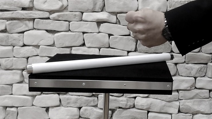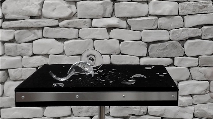 Place a glass, light bulb, neon or other small glass overhang on the base of this table and at your command it will explode into a thousand pieces!
