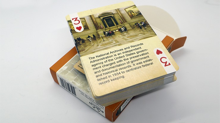 This deck contains 56 cards printed on Casino quality stock. The deck acts as a micro-history book with each card containing information about the History of Washington DC.