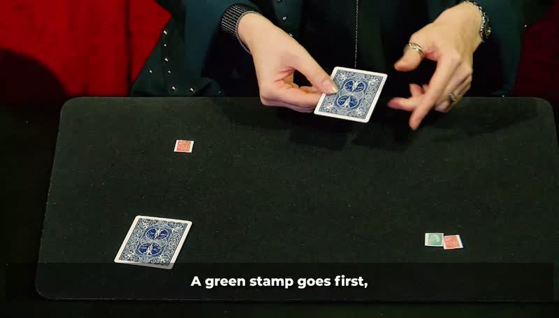 A green stamp goes first, then a red stamp, and finally the second green stamp.