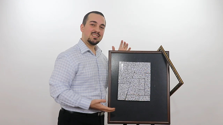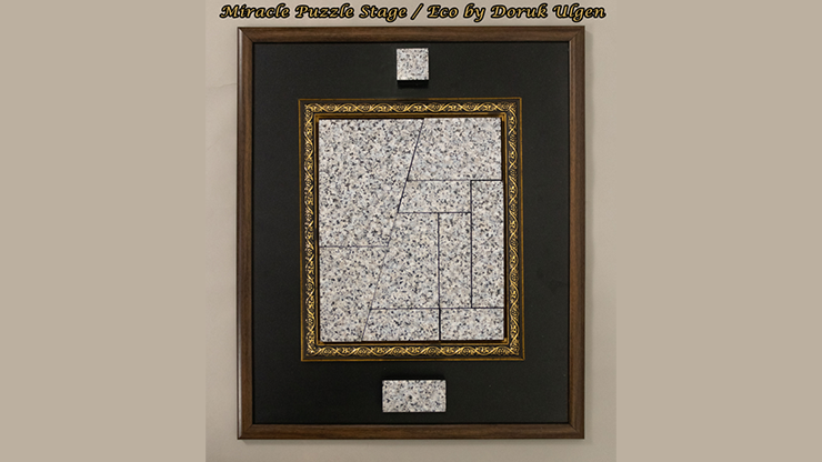 Performer introduces a puzzle that fits perfectly in a beautiful frame, which all together is displayed upright on an elegant display board. He invites a spectator to examine the puzzle pieces and the frame. Frame is removed and hanged on the corner of the display board. Performer produces an extra piece and puts it on the display stand for future use. Puzzle pieces are mixed and re arranged in full view. Although the rectangular shape is still the same, one piece seems to be missing. Extra piece shown earlier, fits perfectly to this spot. However mystery continues as the performer produces an even bigger piece, adds it to the puzzle, re-arranges the pieces and yet again make a perfect rectangular. However, this time the previously added piece is left out. Performance once again rearranges the pieces and creates the perfect spot for the piece. All of the mystery so far escalates itself to a new level once the performer takes the frame which stayed in full view trough out the performance. Although there are new pieces added, the frame still fits the puzzle perfectly, leaving the audiences puzzled with a sophisticated mystery experience.