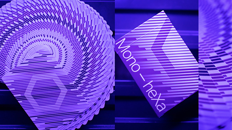 The deck is a sure fire hit for carditsry, watch your flourishes come to life as the optical illusion of lines move effortlessly, and once more the Mono decks work together, as two tucks pushed together form a completed hexagonal pattern.
