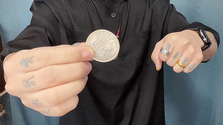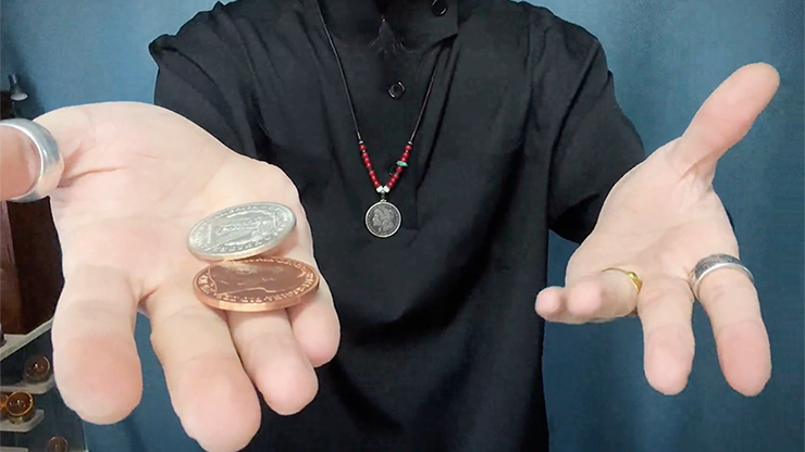 This classic of SUN MOON coin magic is now available in “Morgan Replica Dollar” size.