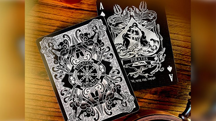 Pirates Playing Cards is a beautifully and intricately designed deck of pirates themed premium playing cards put into a mechanical opening and closing tuck box with gear movement made entirely out of paper which is no bigger than a standard deck of cards. Conceptualized and designed in its entirety by us at The Paper Gear Company over the last 3 years, we hope our Pirates Playing Cards will be a deck that you consider worthy to be in your collection.
