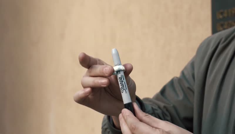 - An audience’s ring, coin, earring, or earbuds, moving on a card;