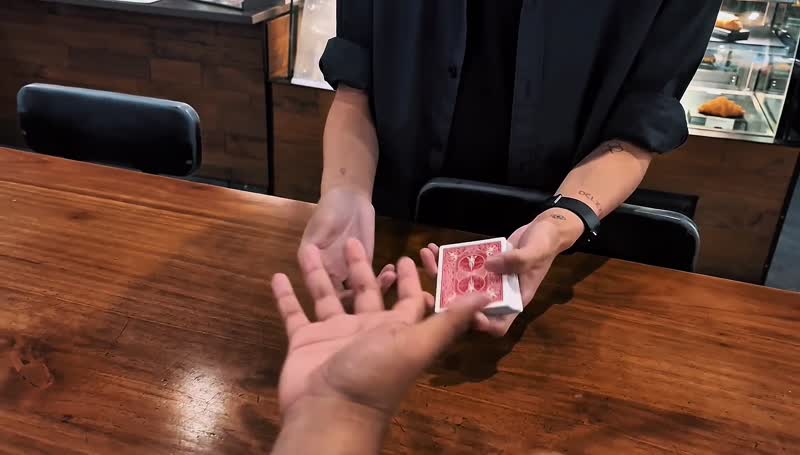 A single Queen of Hearts is displayed clearly and openly. With just a flick or a wave, it visually transforms into the Four of Hearts – no cover, no suspicious moves, just pure visual magic.