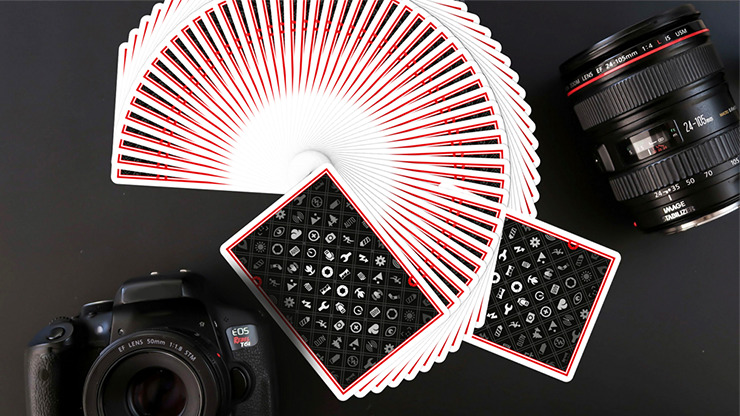 The deck is a collaboration with Matt Fujiwara and brilliantly mimics the aesthetics of a camera. The card back features icons that can be found and recognized by any camera owner or operator (shooter).