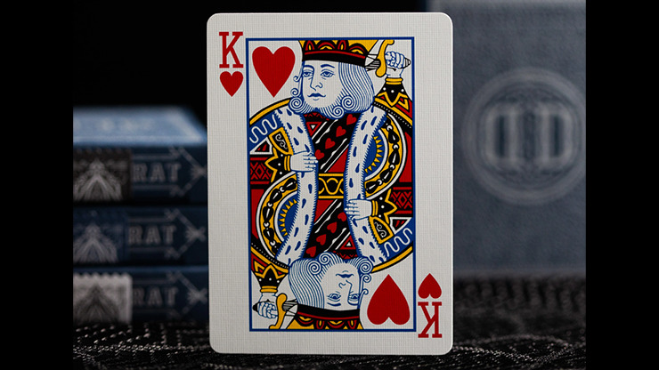 The cards feature our trademark D&D monogram in a new typeset surrounded by a mosaic pattern on the backs, along with a custom Ace of Spades, Jokers, and suits for the number cards. Printed by the U.S. Playing Cards Co. on our trademark thin stock using classic Arrco-style court cards.