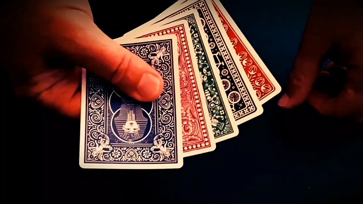 I’ve fooled everyone – BADLY – with this! It’s visual, quick & magical. NO sleights, either! Oh, and an instant reset. Basically, five blue-backed cards are shown as an average poker hand. Then, bam! They change to a royal flush but with five different backs.
