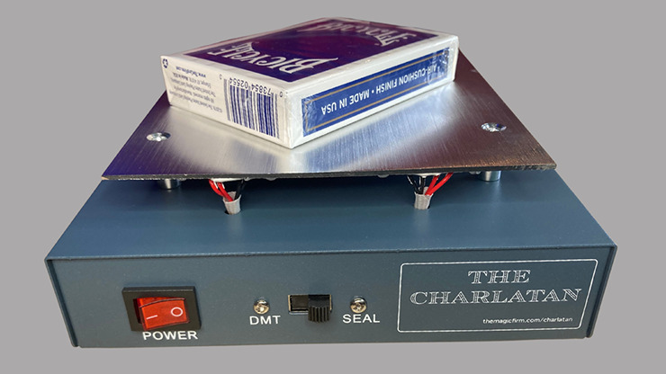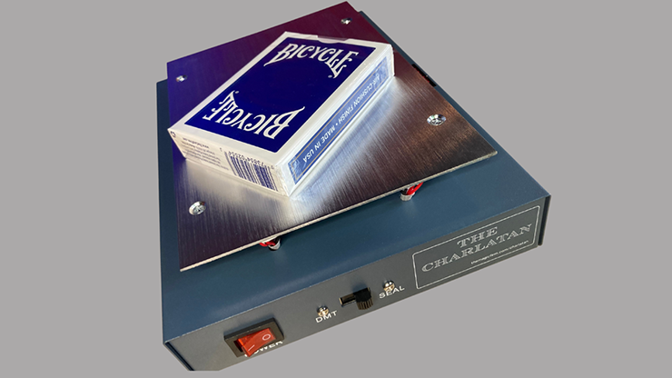 The Charlatan is a portable heating device that not only allows you to perfectly reseal a deck of cards back to factory-fresh status, it also allows you to fuse dry mounting tissue (aka DMT) for making the most deceptive card gaffs possible.