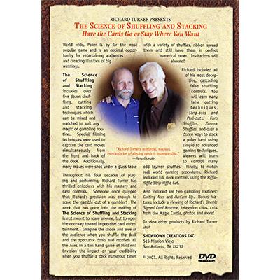 The Science of Shuffling and Stacking includes over five dozen shuffling, cutting and stacking techniques which can be mixed and matched to suit any magic or gambling routine. Special filming techniques were used to capture the card moves simultaneously from the front and back of the deck. Additionally, many moves were shot under a glass table