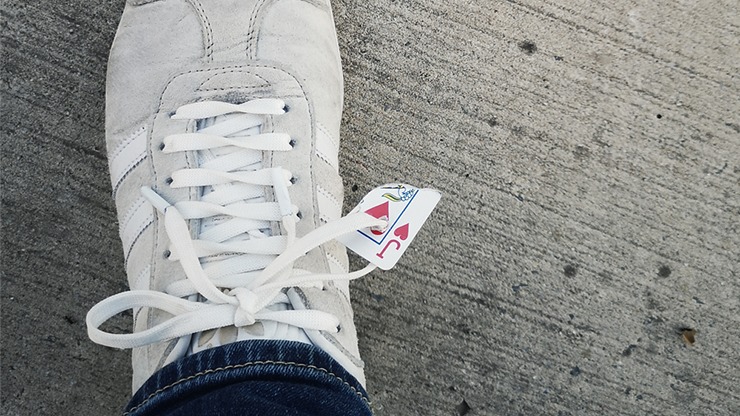 From the mind of Jota, a new idea where the illusionist clearly takes the corner of a card, ring or key, and in less than a blink of an eye makes it travel from his hands … to his shoelaces! And truly tied!