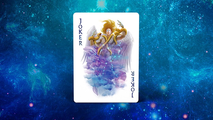 Inspired in astrology and the zodiac signs this deck of playing cards are magnificent art pieces. Each court card represents beautifully a zodiac sign digitally hand drawn from scratch with very high-end details, using deep space colors with a heavenly touch.