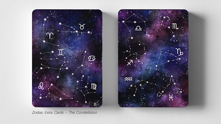- 56 custom playing cards inspired in astrology and the zodiac signs.